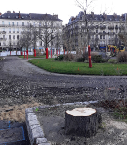 L’avis que nous avions donné au Maire disait notre satisfaction concernant la réfection du sol. Parmi les nombreuses réserves que nous avions formulées, il y avait la demande de « garder les grands arbres qui restent car ils sont précieux pour l’ombre qu’ils apportent l’été« .